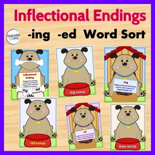 Inflectional Endings Dog Theme Word Sort -ed and -ing