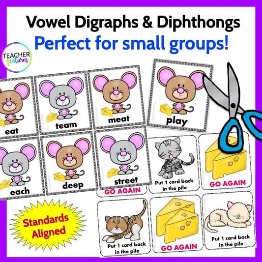 PHONICS GAME LONG VOWELS DIPHTHONGS VOWEL TEAMS Mouse & Cheese