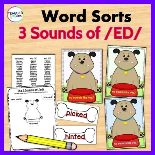The 3 SOUNDS OF /ED/ WORD SORT Dog Themed