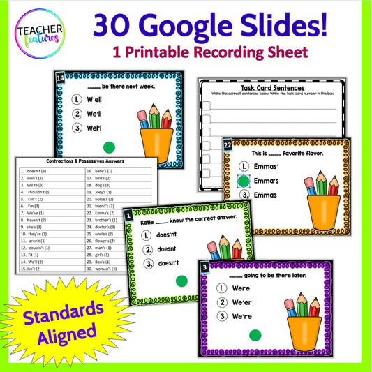 CONTRACTIONS & POSSESSIVES 2nd Grade Grammar GOOGLE SLIDES