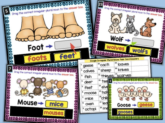 Google Slides 2nd Grade Grammar IRREGULAR PLURAL NOUNS