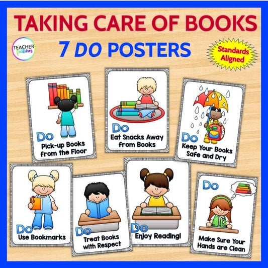 TAKING CARE OF BOOKS Elementary Book Care & Library Lessons POSTERS and BOOKLET